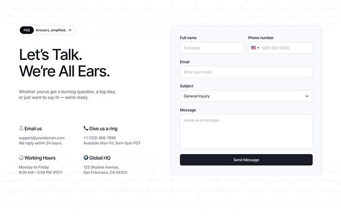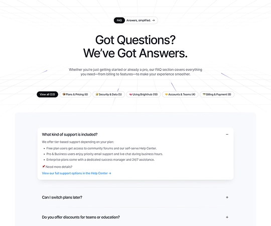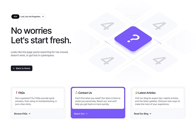 From onboarding flows to support policies, every essential page is built-in and fully customizable — saving you time, boosting trust, and getting you live faster.